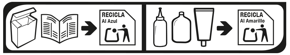 Estos embalajes tienen un futuro, ¡por favor, recíclalos! Deposita los envases de plástico vacíos en el contenedor amarillo, la caja e instrucciones en el contenedor azul.