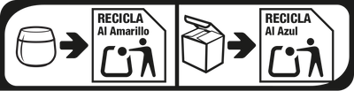Estos envases tienen un futuro, ¡por favor recíclalos! Deposita el envase vacío en el contenedor amarillo y la caja en el contenedor azul.